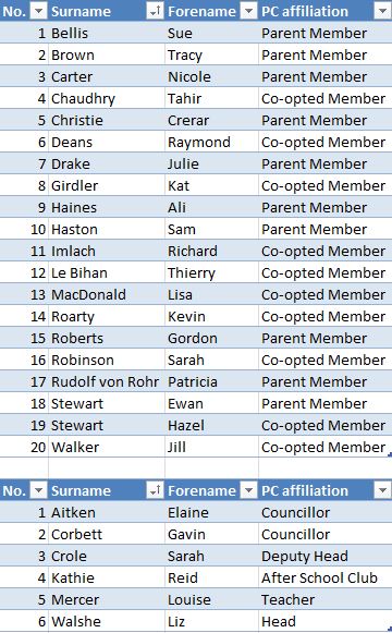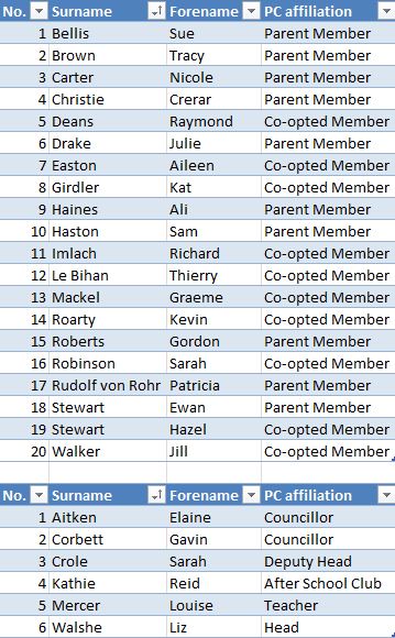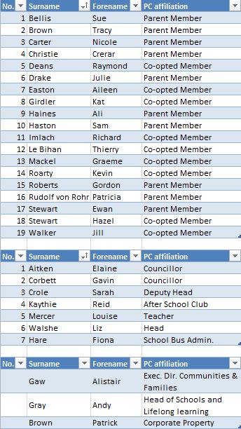 The list of people representing parents at the Meeting on Tuesday is therefore: