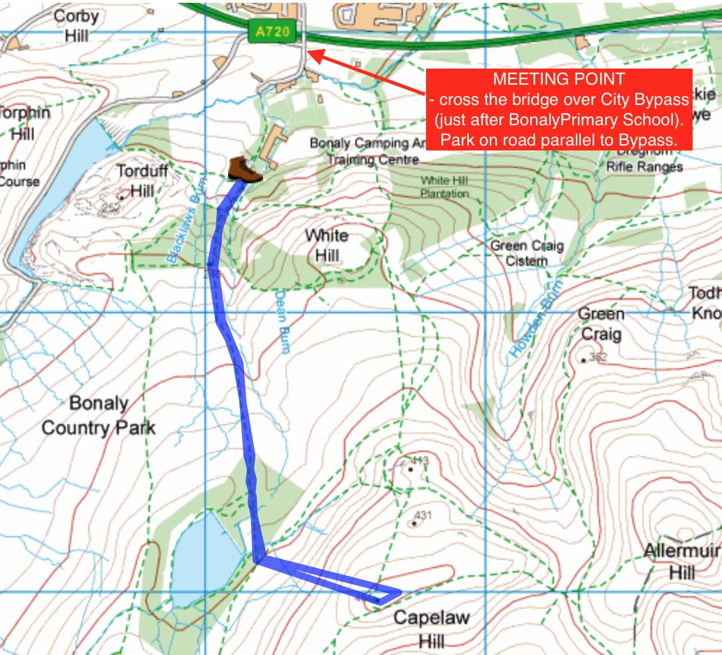 Meet at 11am at the car park at the start of Torduff Road, just off Bonaly Road as you cross over the bypass. You can also get here on the no.10 bus. https://lothianbuses.co.uk/timetables-and-maps/timetables/10